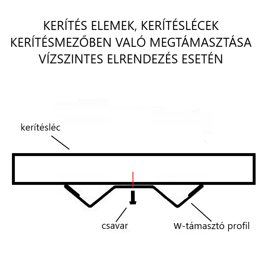 Kerítés, kapu és korlát szerkezeteknél vízszintes lécezés esetén a köztes megtámasztáshoz